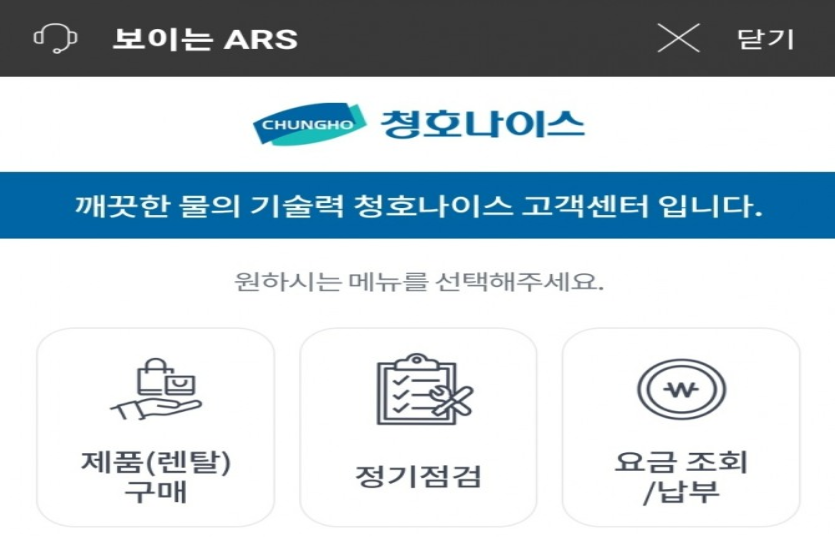 26일 청호나이스에 따르면 ‘보이는 ARS 서비스’는 고객이 고객센터에 전화했을 때 ARS 음성안내와 동시에 스마트폰 화면을 보면서 원하는 서비스를 손쉽게 선택할 수 있는 시스템이다.