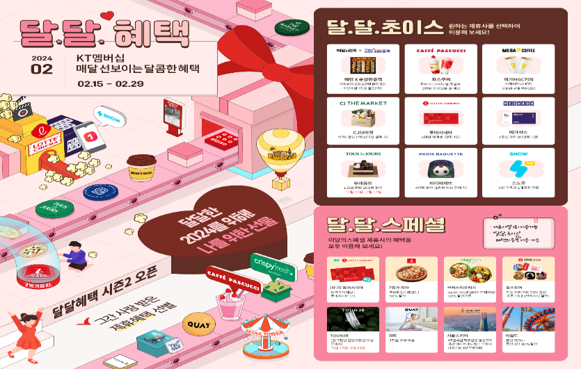 KT는 2024년도 첫 KT 멤버십 달.달.혜택으로 새학기 준비를 위한 자기계발 및 여가 혜택을 준비했다고 15일 밝혔다.