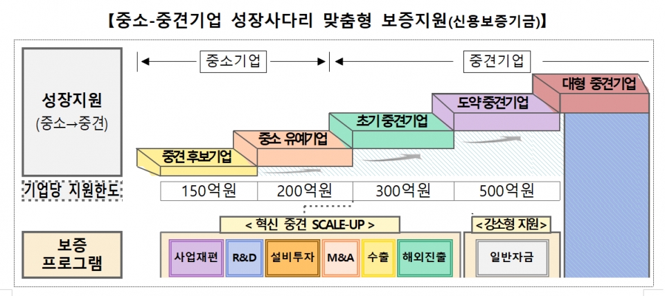 또한 중견기업이 자본시장 등 다양한 자금조달수단을 활용할 수 있도록 1조8000억원 규모의 신규 회사채 발행을 지원하고, 은행권과 보증기관이 협력해 2조3000억원 규모의 성장사다리 프로그램도 마련한다.