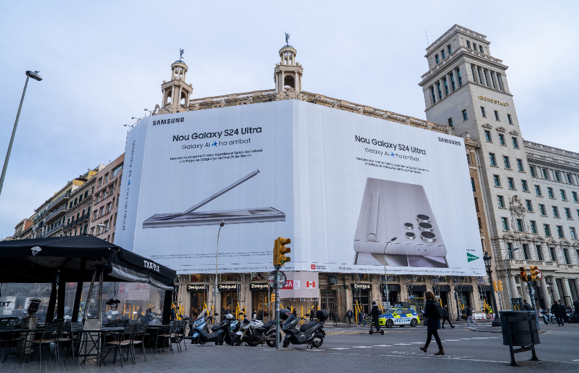 삼성전자는 갤럭시 S24 시리즈와 갤럭시 AI를 소개하는 대형 옥외 광고도 카탈루냐 광장에 설치했다.
