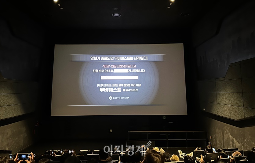 영화가 끝나면 불이 은은하게 켜지면서 “영화가 종료되면 무비퀘스트는 시작된다”는 문구가 화면에 뜬다.