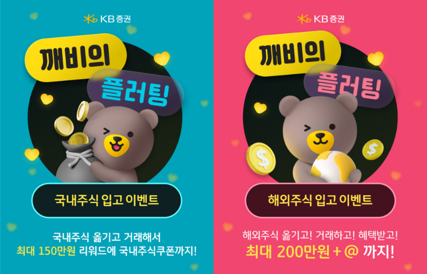 [이지경제=정석규 기자] KB증권은 비대면·은행연계 개인고객을 대상으로 국내·해외주식 타사대체입고 이벤트 ‘깨비의 플러팅’을 5월31일까지 진행한다고 26일 밝혔다.