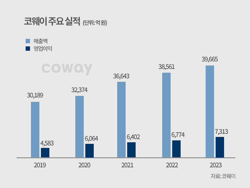 국내 환경가전 사업의 굳건한 성과에 더해 해외 법인의 호조세가 이어지면서 외형 확장과 수익성을 동시에 확보했다.