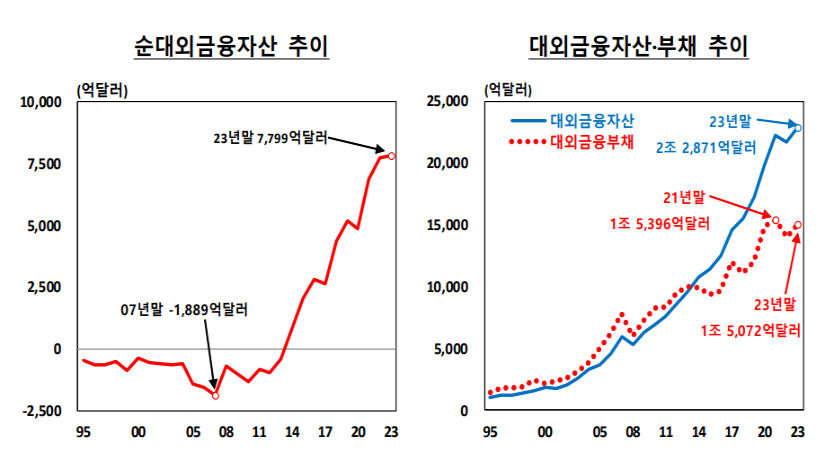 한편 지난해 해외직접투자와 증권 투자가 동시에 크게 늘면서 대외금융자산 규모도 역대 최대를 기록했다.