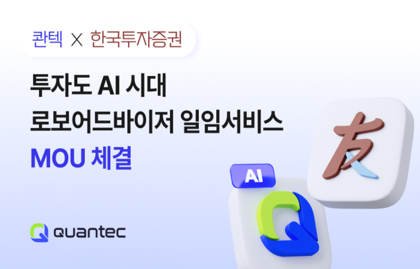 이번 업무협약에 따라 콴텍은 58개의 국내 최다 상용화 가능 알고리즘을 개발한 기술력과 자산관리 노하우를 토대로 한국투자증권 고객들이 로보어드바이저 투자일임 서비스를 누릴 수 있도록 협력한다는 계획이다.