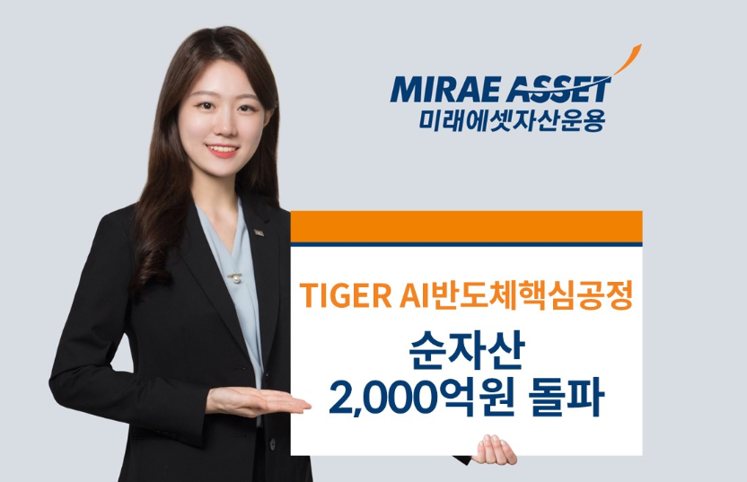 [이지경제=정석규 기자] 미래에셋자산운용은 자사 상품 ‘TIGER AI반도체핵심공정 ETF’의 순자산이 2000억원을 돌파했다고 12일 밝혔다.