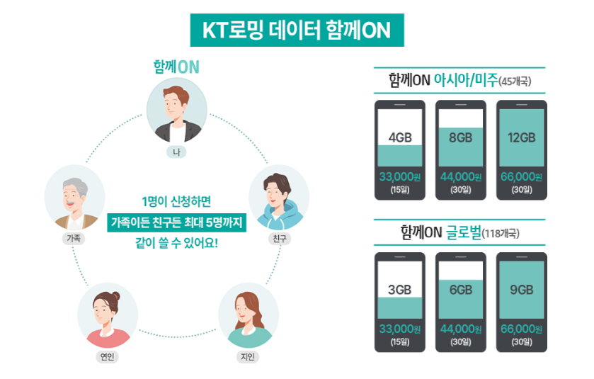 1명만 가입하면 가족·친구 관계없이 동반자 최대 4명까지 데이터 로밍 공유 무료