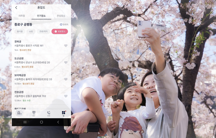 SKT 관계자는 “인기있는 벚꽃 명소들의 요일, 시간대별 예상 혼잡도와 실시간 혼잡도, 최근 방문 트렌드, 방문자 연령대별 분포 등의 정보를 제공하여 에이닷이 쾌적한 나들이를 즐기는데 도움을 줄 것으로 보인다“고 말했다.