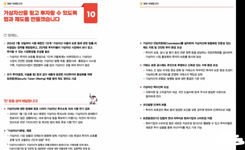 민주당도 가상자산업권법 제정 및 디지털자산기본법 완성을 전면에 내세웠다.